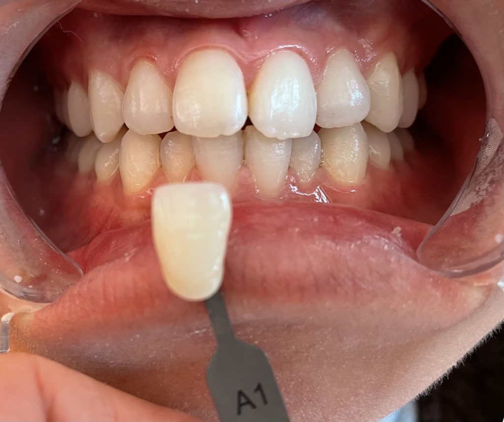 このホワイトニングの薬は表面の光沢と漂白により光に当たると明るさを実感できます。個人差がかなりありますので1回で実感し終わる方もいれば5回通われる方も。